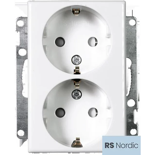 Dobbel stikkkontakt uten ramme med jord, monteres ELKO RS16 dobbelstikkontaktrammer 1-5 hull.