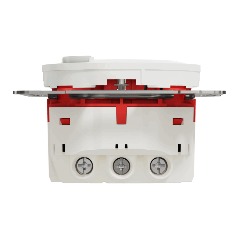 Dette uttaket benytter hurtigklemmekobling og er laget av fargebestandig materiale i renhvit (RAL9003), noe som gir et moderne og stilrent utseende.