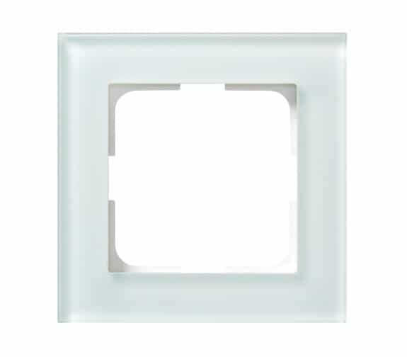 ELKO Plus OPTION rammer 1 hull i hvitt frostet glass. Det hvitfrostede glasset er herdet og har et svakt naturlig grønnskjær.