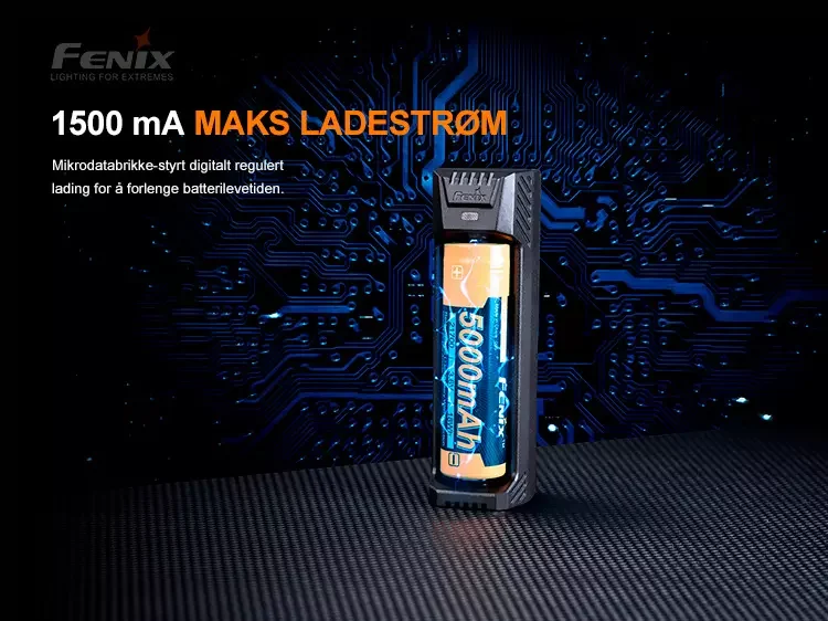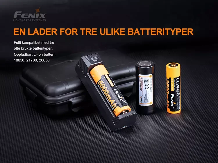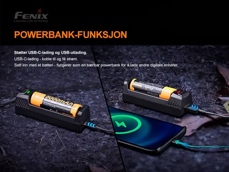 Fenix ARE-X1 V2.0 er en enkeltkanals smartlader som har USB-C-lading og USB-utladingsfunksjon (powerbank).