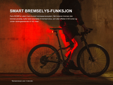 Fenix BC06R er en oppladbar sykkelbaklykt med høy ytelse og smart automatisk bremselysfunksjon.