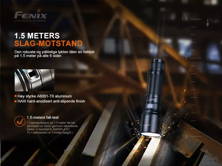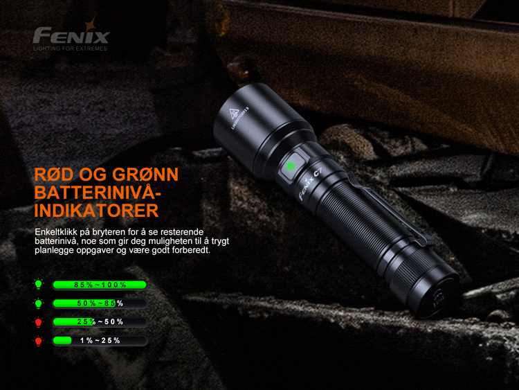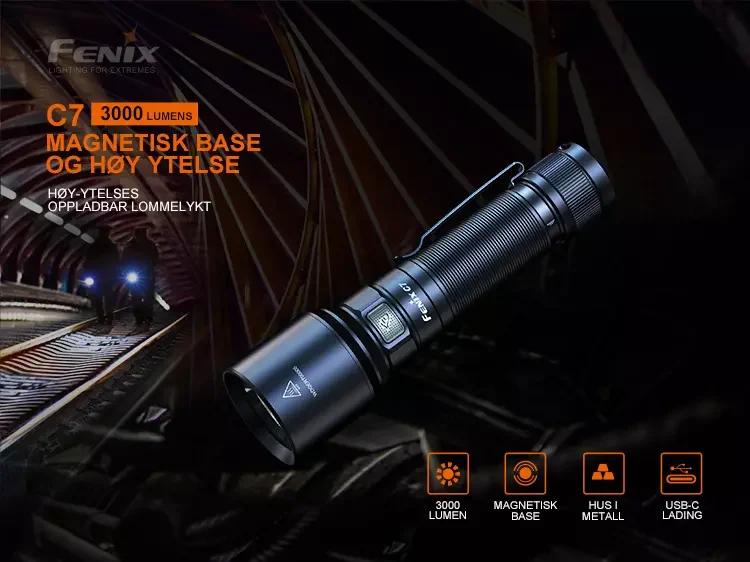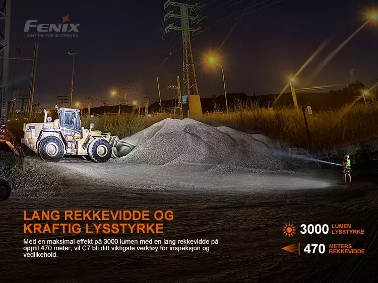 Fenix C7 er en høyytelses oppladbar lommelykt for industrielt vedlikehold og drift.