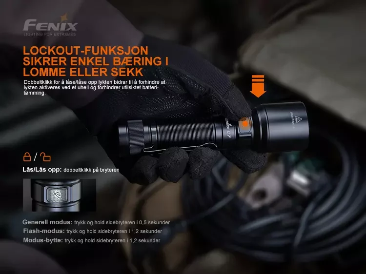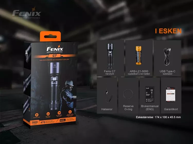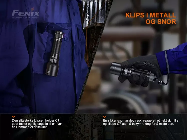 Fenix C7 LED-lommelykten er et utmerket verktøy for alle typer utendørsaktiviteter eller å bruke på industrielle arbeidsplasser.