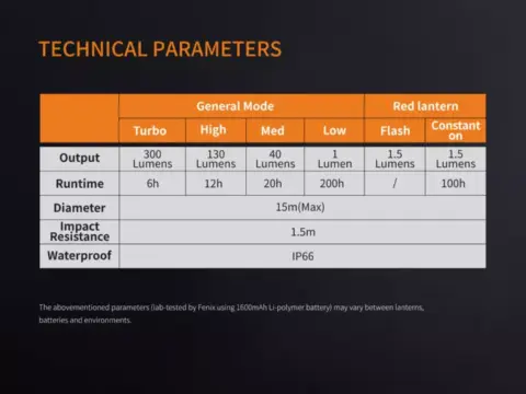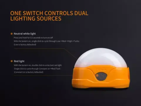 CL20R er en oppladbar campinglykt utstyrt med nøytralhvite og røde lysdioder, som avgir en maksimal effekt på 300 lumen.