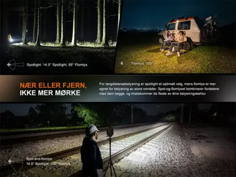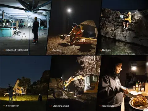 Den har en kombinert maksimal lysstyrke på 1600 lumen og drives av et oppladbart 5000mAh-batteri som sikrer lang brukstid.