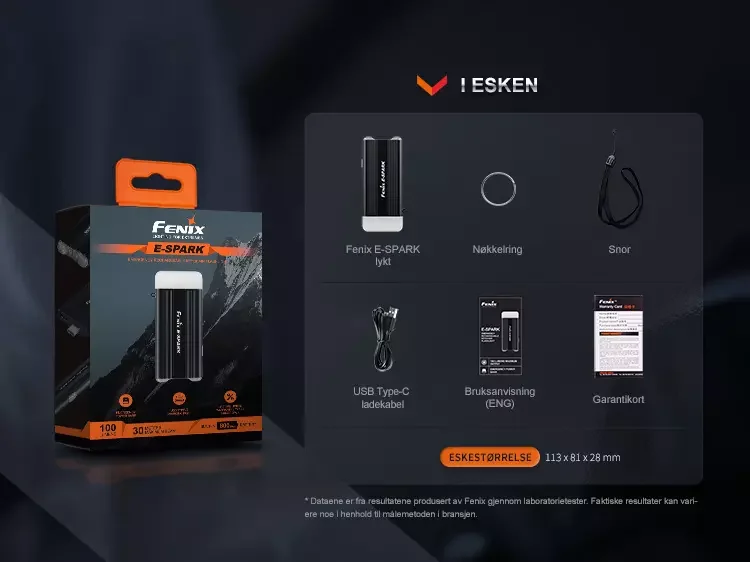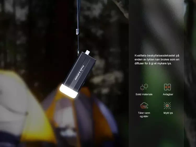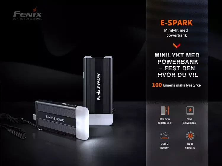 Fenix E-SPARK er en oppladbar minilykt med nøkkelringfeste og powerbank-funksjon.
