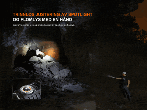 Fokusering: 270° roterbar vribryter gir nøyaktig justering mellom spotlight og flomlys.