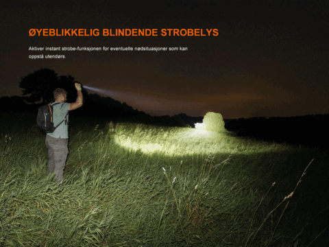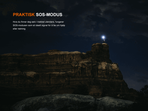Modusvalg: Elektronisk bryter gir enkel tilgang til modusvalg, inkludert SOS og Strobe-modus.