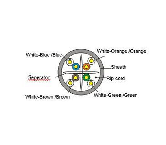 Svært installasjonsvennlig kabel som leveres på trommel i boks – 1 meters lengde. Kabelen er spesielt tatt frem for åpen installasjon, og er i hvit farge, uten noen skrift påtrykket. På grunn av en solid kappe, kan kabelen også stiftes til vegg med klammer. Klarer minimum 250MHz båndbredde. Kabelen er sertifisert i henhold til det nye CPR direktivet – Brannklasse Eca – Leder : Ren kobber diameter 0,530 mm – Kappe : Diameter 5,8 mm ± 0,4mm