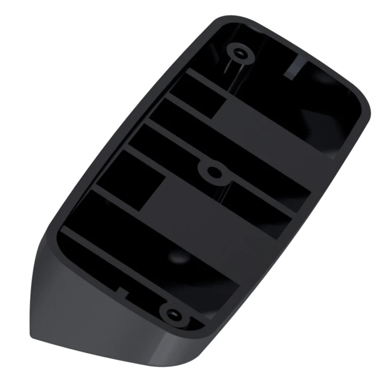 Sølvfarget veggbrakett for MicroSense komfyrvaktsensor. Plasseres på vegg 80 cm over koketoppen for å oppnå riktig vinkel og avstand til kokesonene for optimal overvåking.