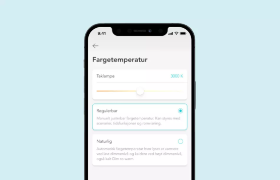 Juster enkelt lyset etter designvalg og anledning. Med justerbar fargetemperatur kan du justere lysets utseende mellom kjølig og varm for å skape forskjellige stemninger og stiler.