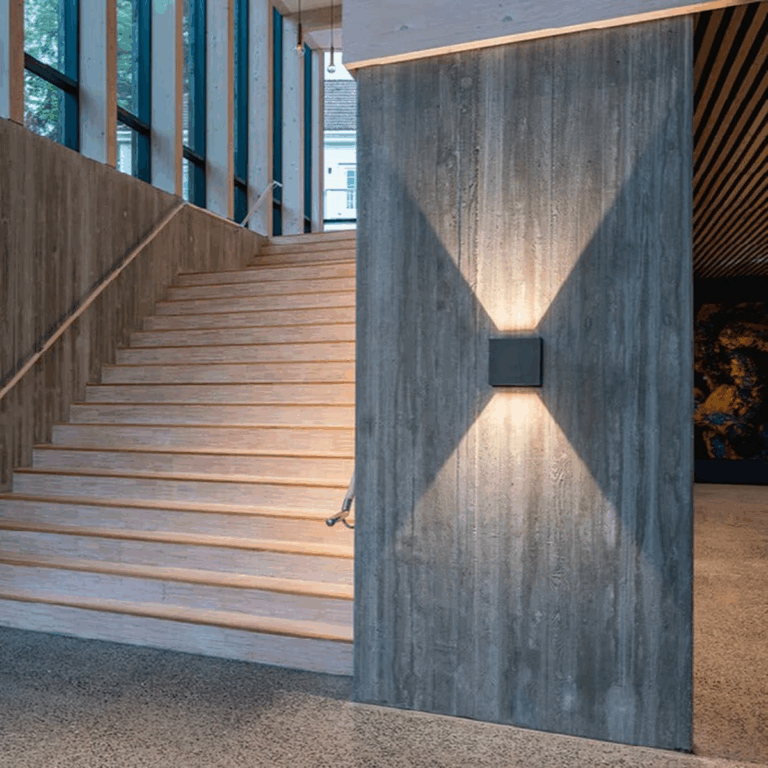 Med justerbart lys opp og ned gir armaturen en dekorativ og funksjonell belysning som løfter fasader, inngangspartier og oppholdsrom.