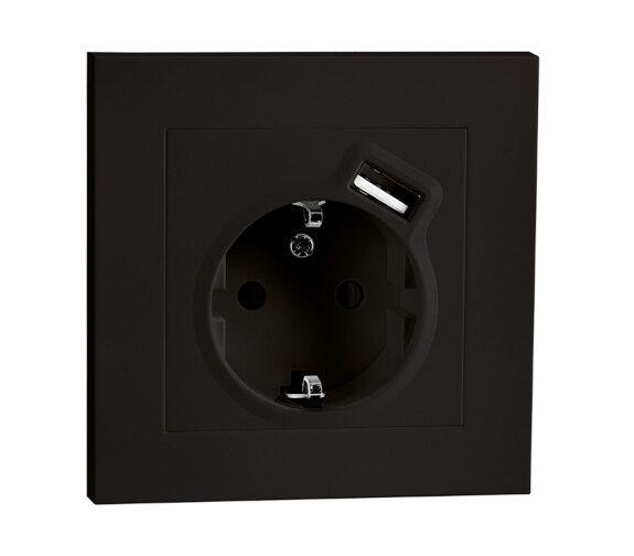 Innfelt SG stikkontakt med USB-A uttak på 2,4A.