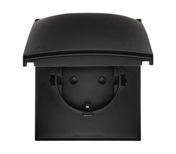 Enkel Stikkontakt IP44 påvegg 16A, med Hurtigterminal. Sort.