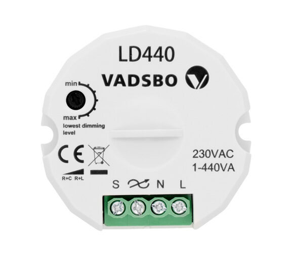 LD440 är speciellt anpassad för dimring av lågenergilampor, LED och elektroniska transformatorer upp till 440VA.
