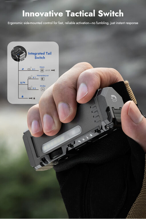 Perfekt for taktisk bruk, nattarbeid eller EDC-oppsett.